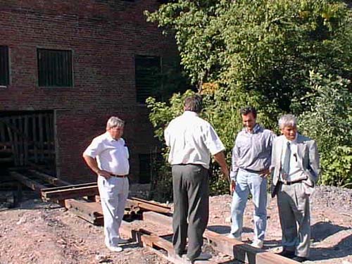 Implementation of new technology for vertical shafts elimination after abandoning coal mines. This is very important for Ukraine now because there are not extensive technical experience of closing deep coal mines anywhere. Implementation of the technology saves money and essentially increases safety. Figure 2 demonstrates a moment of examination of a site where a vertical shaft is to be eliminated at a closed coal mine “Felix Con”. Specialists from DonSTU (Professors Alexandrov S.N. - left and Nazimko V.V. – third from the left), from WVU (Professor Peng S.S. – right) and from Zasiadko coal mine (Chief Engineer Petrov V. N. – second from the left) are examining facilities at the shaft.